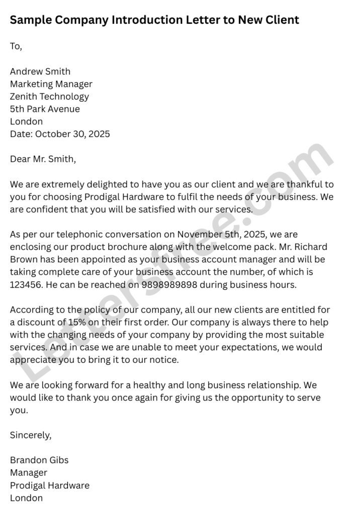 Company Introduction Letter to New Client Sample Format & Example