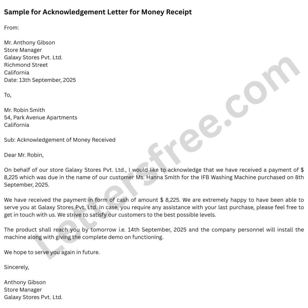 In business, once you have received the payment, sending a formal acknowledgement letter to your debtor or business associate is a must.